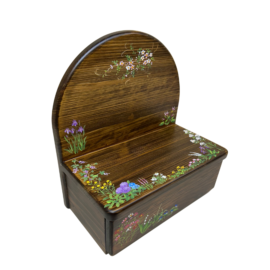 桧の清らかな香りと、手描きの野花が彩る小さな祭壇。